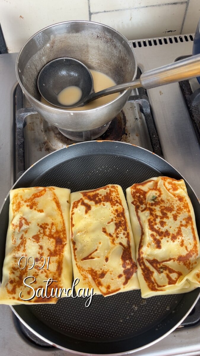 Dégustez nos délicieuses trois crêpes au jambon et fromage et ça sauce spéciale : un mélange parfait de saveurs fondantes et gourmandes