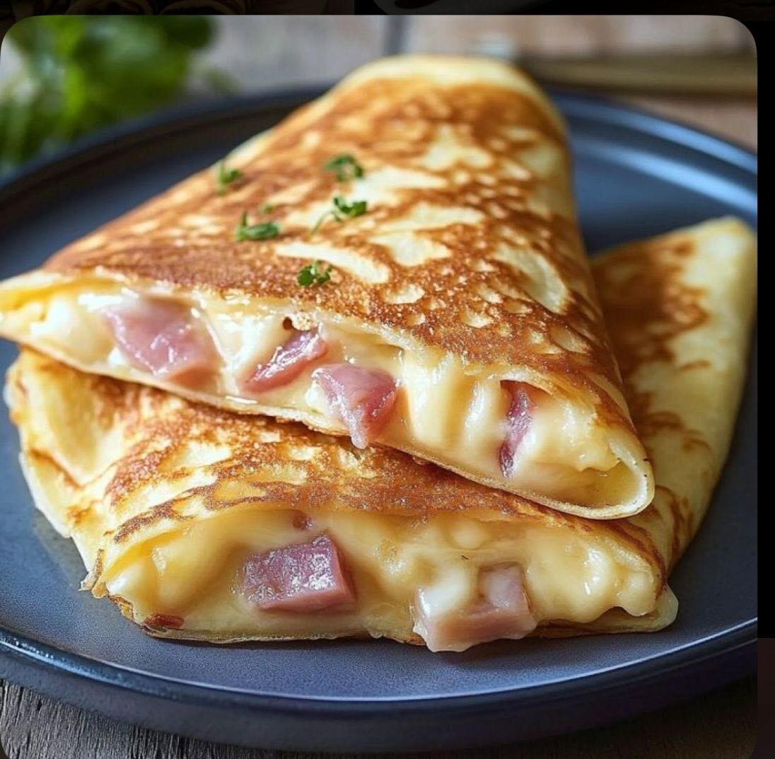 Découvrez ces délicieuses crêpes garnies de jambon et fromage fondant.