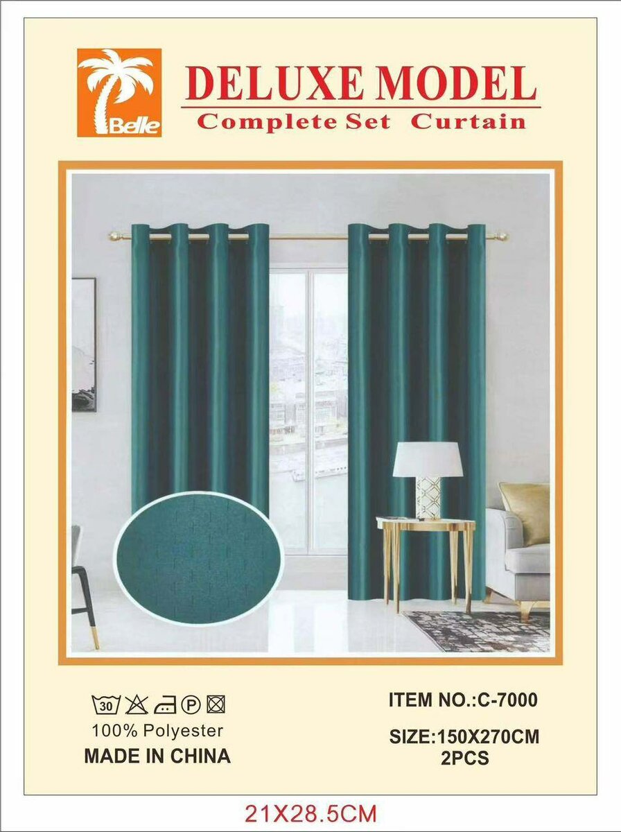 Élégants rideaux verts Belle Deluxe, 100% polyester, pour une décoration raffinée. Dimensions : 150x270cm, livrés par 2. Fabriqués en Chine. Parfaits pour salon ou chambre.