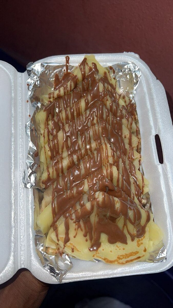 Savourez cette délicieuse crêpe garnie de chocolat onctueux, un dessert parfait pour les amateurs de douceurs. Idéale pour un goûter ou un dessert raffiné, cette crêpe offre une expérience gustative inoubliable. Parfaite pour les soirées entre amis ou les moments cocooning.