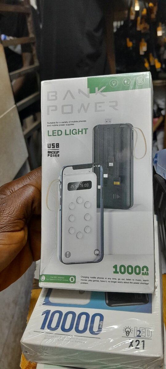 Stay connected with this 10000mAh power bank featuring an integrated LED light. Perfect for charging your devices on the go with USB capabilities. Its sleek design fits easily into any bag, making it an essential travel companion.