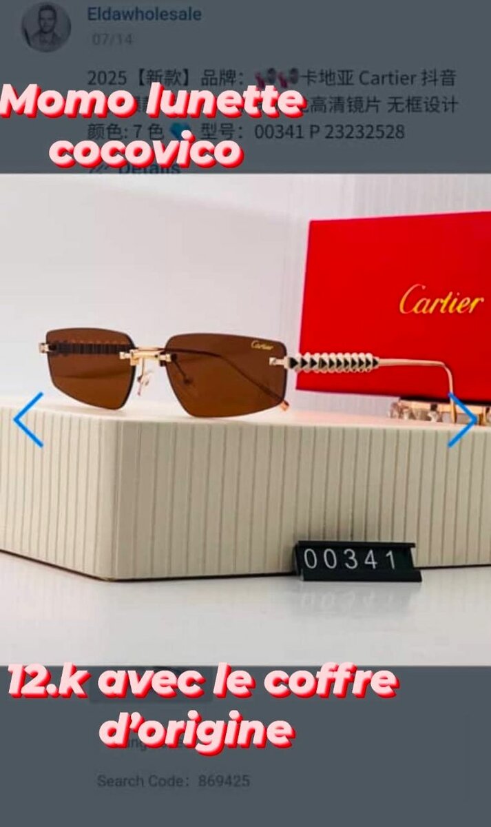 Découvrez ces lunettes Cartier avec verres sombres et monture dorée, idéales pour un look sophistiqué. Livrées avec un coffret d'origine, elles ajoutent de l'élégance à chaque tenue. Parfaites pour les occasions spéciales ou un usage quotidien.