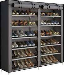 12 tier shoe wardrobe Takes 36 pairs of shoes. Easy to assemble and diamante. No tools needed A beautiful blend of fabric cover, plastic pipes, hollow metallic pipes..