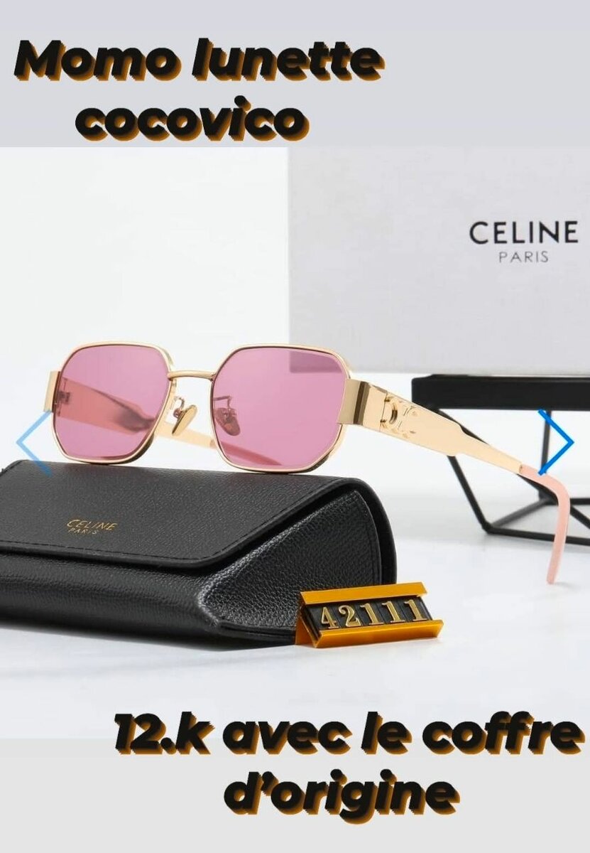 Lunettes de soleil Celine élégantes avec verres roses et monture dorée. Parfaites pour un style chic et moderne. Livrées avec étui d'origine.