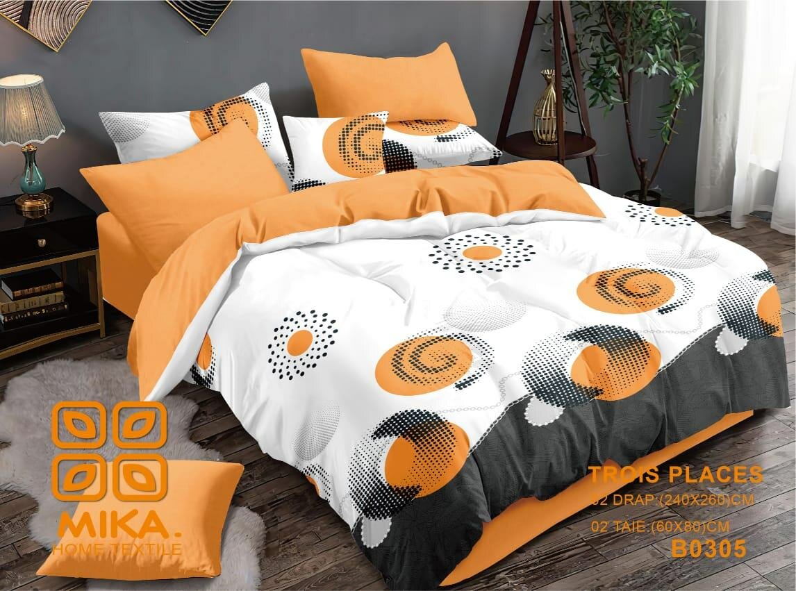 Enhance your bedroom with the stylish MIKA 3-Piece Bedding Set. Featuring vibrant patterns in green and orange, it includes a duvet cover and two pillowcases, all made from soft, high-quality material. Perfect for a comfortable and chic upgrade to your sleep space.