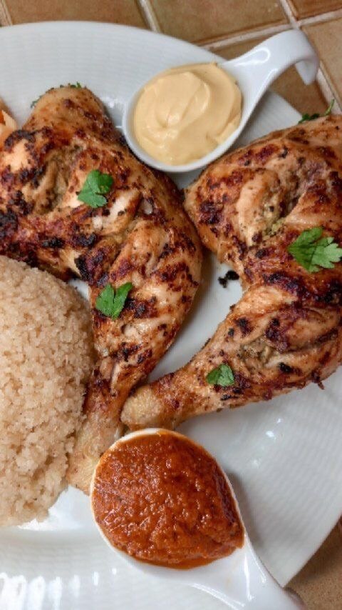 Dégustez notre poulet grillé juteux, parfait pour un repas convivial. Accompagné de sauce onctueuse et céréales, il est idéal pour vos déjeuners ou dîners. Un choix irrésistible pour les amateurs de viande tendre et parfumée.