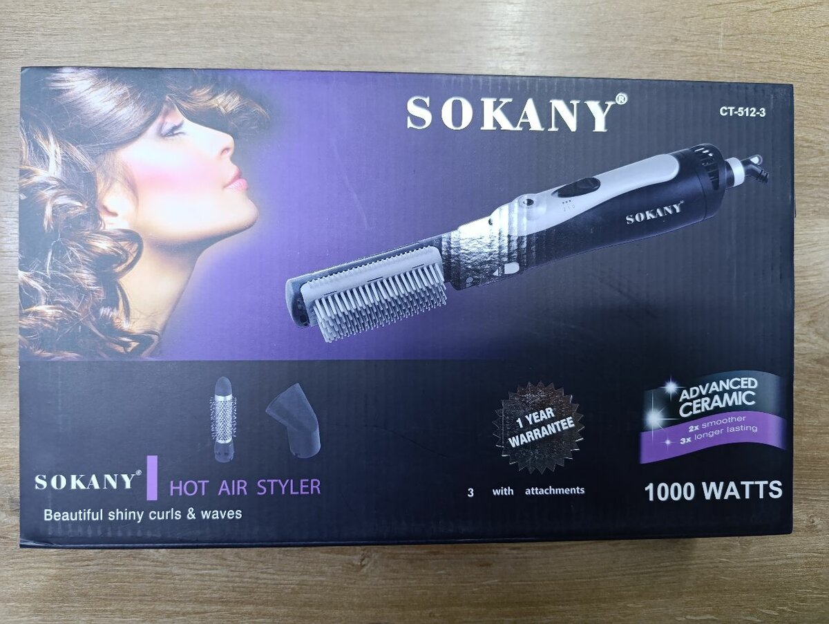 Фен-щетка от Sokany, в комплекте 3 насадки. 1000ват