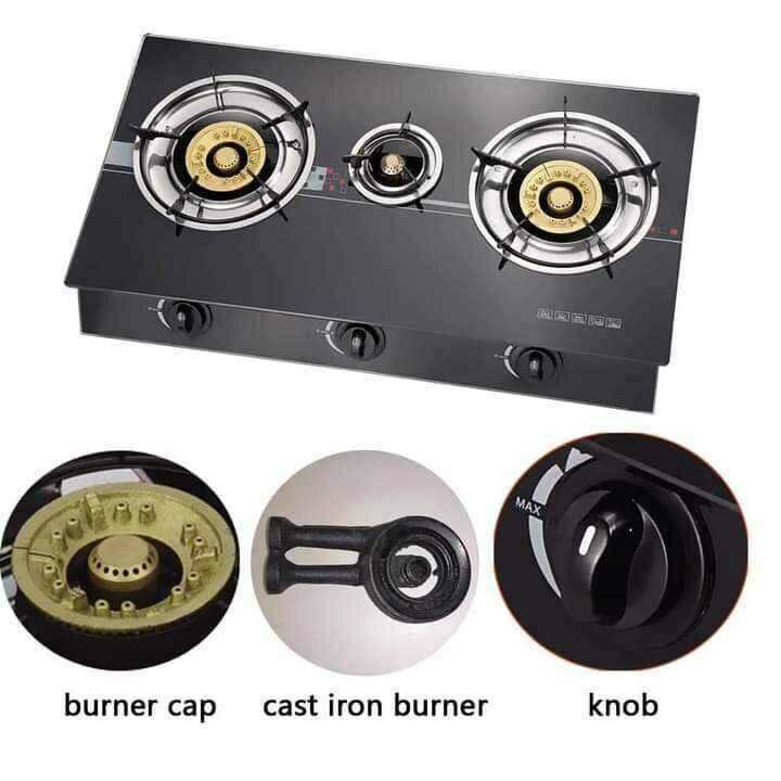 Lefon 3 in 1 Gas stove with Tempered Glass surface