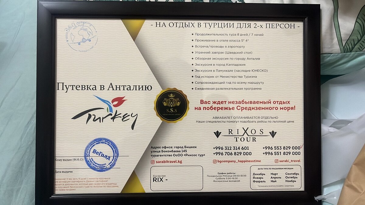 Сертификат на двух персон. Путевка в Анталье срочно 30 тыс