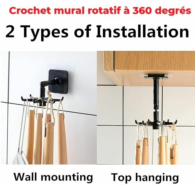 Organisez votre espace avec ce crochet mural rotatif à 360°. Facile à installer, il est idéal pour suspendre divers objets dans votre cuisine, salle de bain ou tout autre espace de vie. Disponible en plusieurs couleurs.