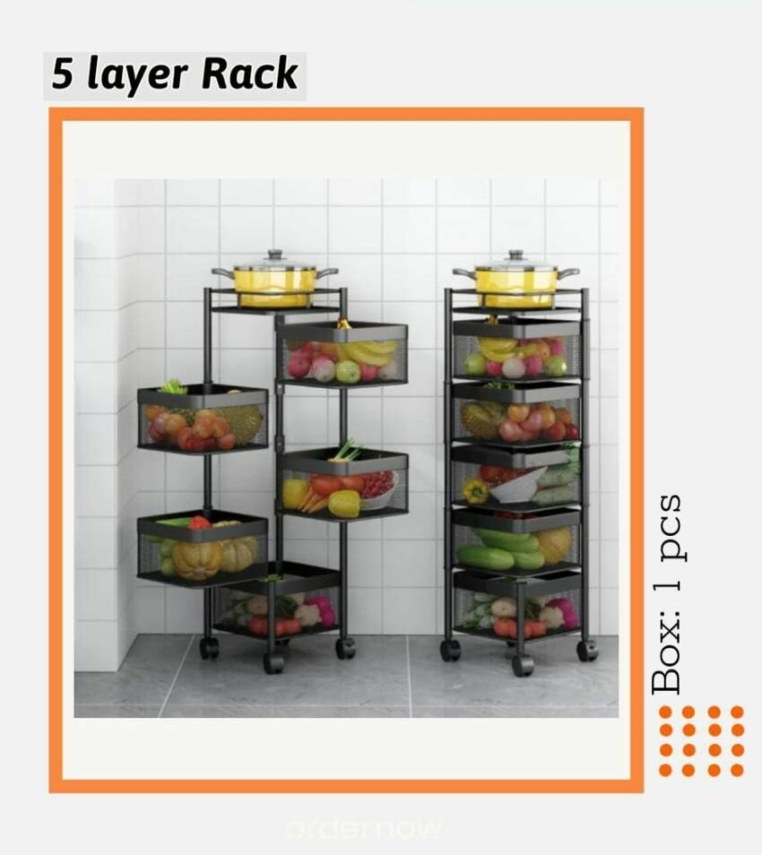 This square rotating kitchen storage rack is made of high quality steel, with black painting anti-rust finishing, which is anti-corrosion, waterproof, sturdy and durable. Storage trolley can withstand total load capacity up to 200lbs and will meet your long term storage needs