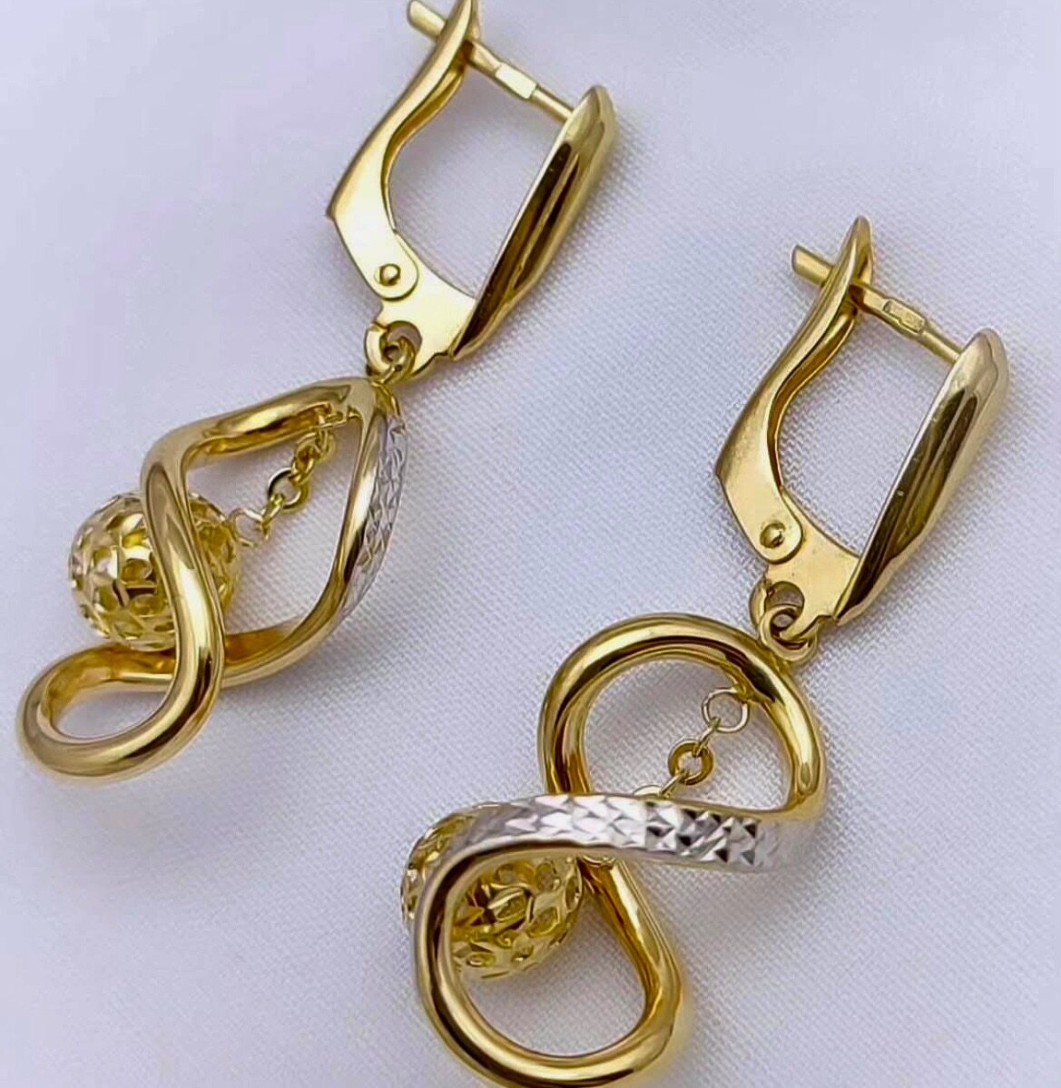 Серьги в жёлтом золоте с белым золотом,585 проба Premium