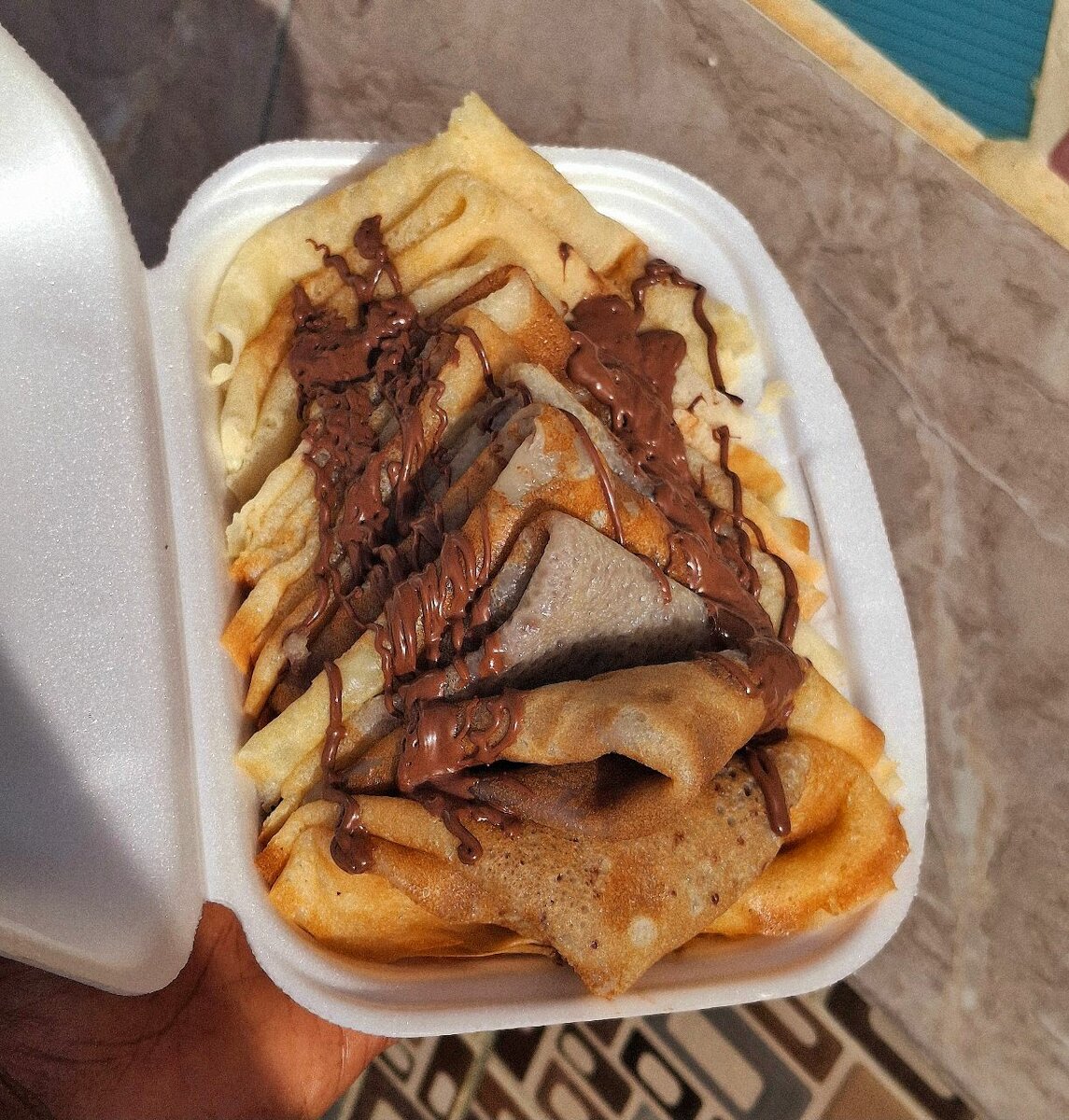 Savourez des crêpes au chocolat délicieusement garnies, parfaites pour une pause gourmande. Idéales pour les amateurs de douceurs, elles sont servies avec du chocolat fondu pour une expérience culinaire inoubliable.