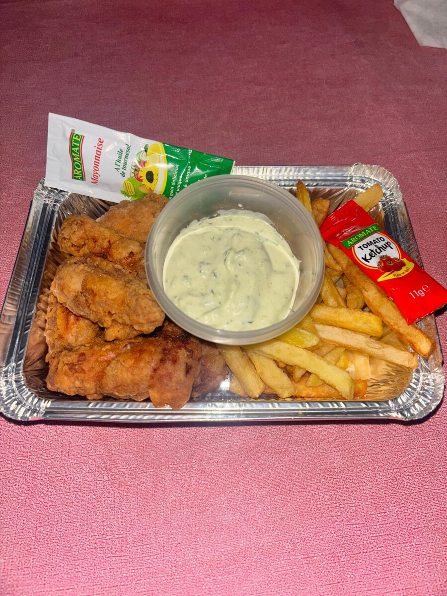 6 délicieuses ailes de poulets panées accompagnées de frites et dune boisson au choix