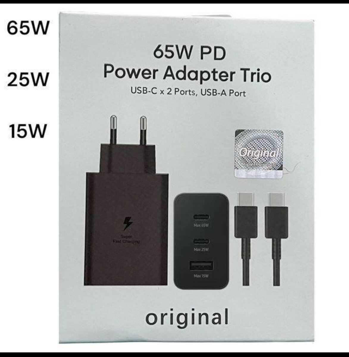Fast-charge multiple devices with this 65W PD Power Adapter Trio featuring 2 USB-C ports and 1 USB-A port. Ideal for home or travel.