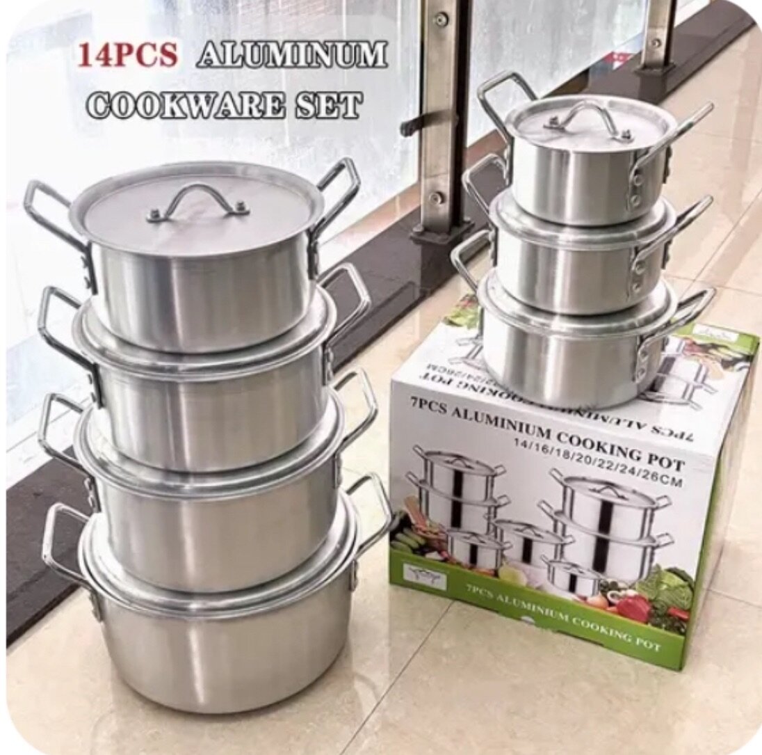 7PÇS SET ALUMINIUM COOKING POTS WITH FITTING LIDS