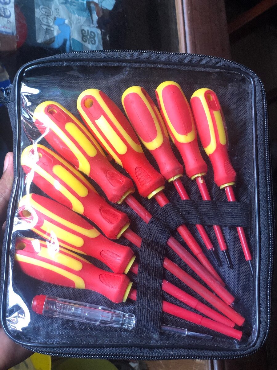 This is a set of insulated screwdrivers designed for electricians. They are used to prevent electric shock when working with live wires