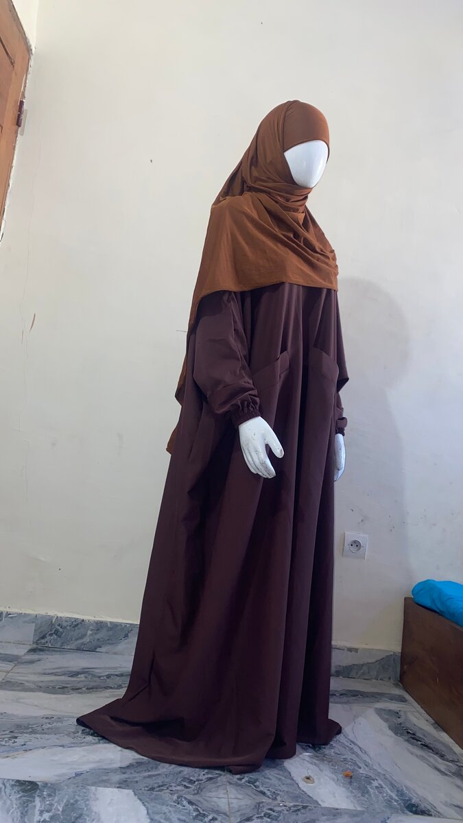 Découvrez cette abaya longue marron, conçue pour offrir élégance et confort. Parfaite pour toutes les occasions, elle est composée de matériaux de qualité qui garantissent une tenue impeccable tout au long de la journée. Idéale pour celles qui recherchent une tenue modeste et sophistiquée.
