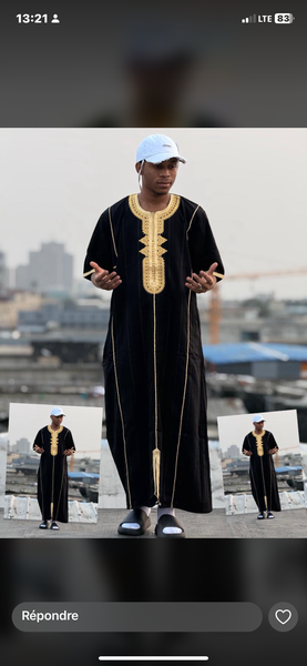 Djellaba homme noir avec broderie dorée