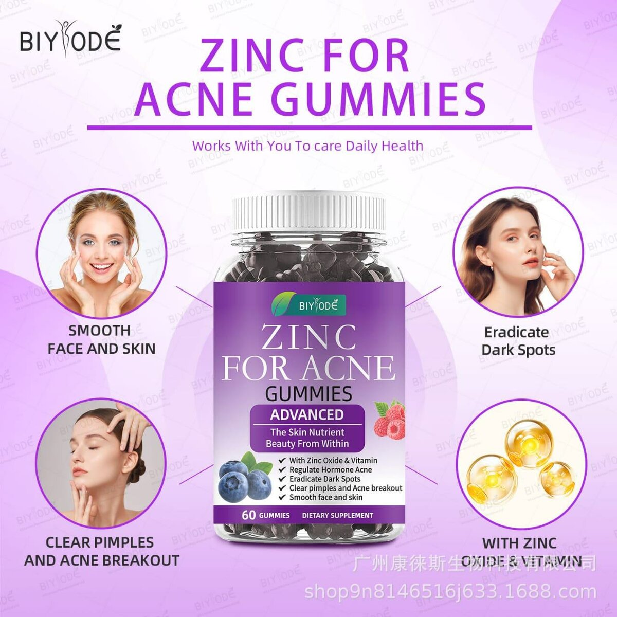 Cross-border spot zinc + acne gummies ZincFoe AcneGummies women's protection whitening skin blueberry flavor
