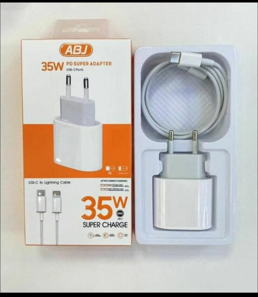 Puissant adaptateur de charge 35W avec câble USB-C vers Lightning. Idéal pour supercharger vos appareils Apple. Compact et efficace, parfait pour la maison ou le bureau.