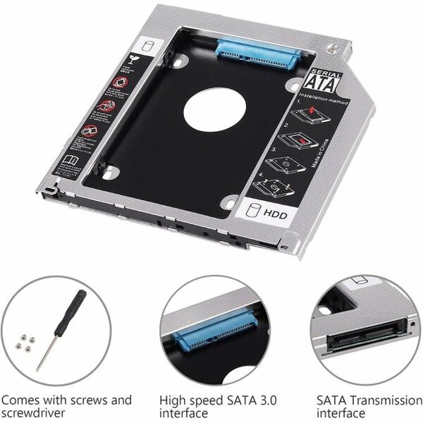 Remplacez votre lecteur optique par un disque dur avec cet adaptateur SATA, Compatible avec de nombreux modèles, améliorez votre stockage en toute simplicité. Livré avec vis et tournevis, installation rapide et efficace. Parfait pour les utilisateurs souhaitant plus d'espace