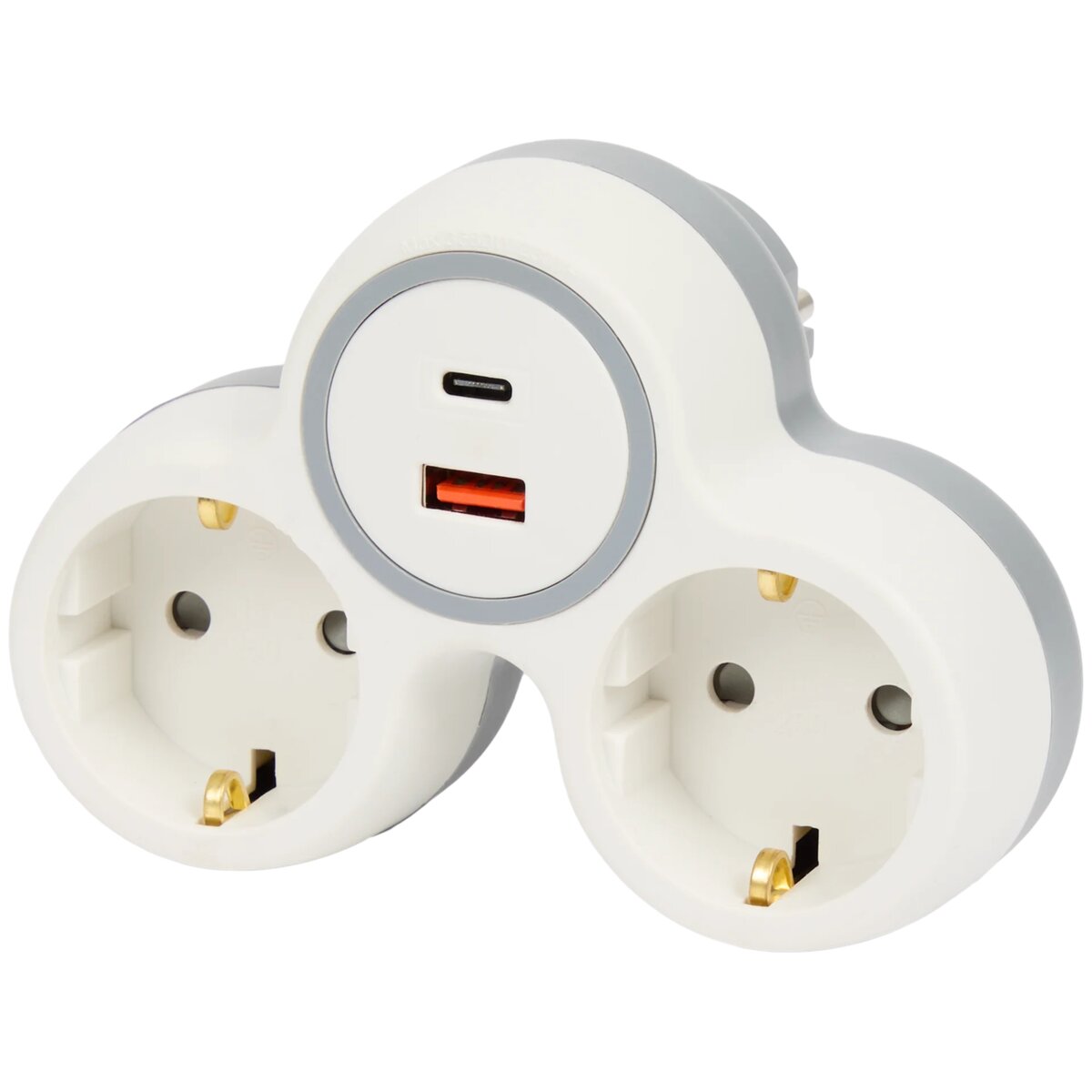 Adaptateur secteur innovant avec deux prises et ports USB pour une charge rapide et efficace de vos appareils. Parfait pour la maison ou le bureau. Compact et pratique, idéal pour les voyages.
