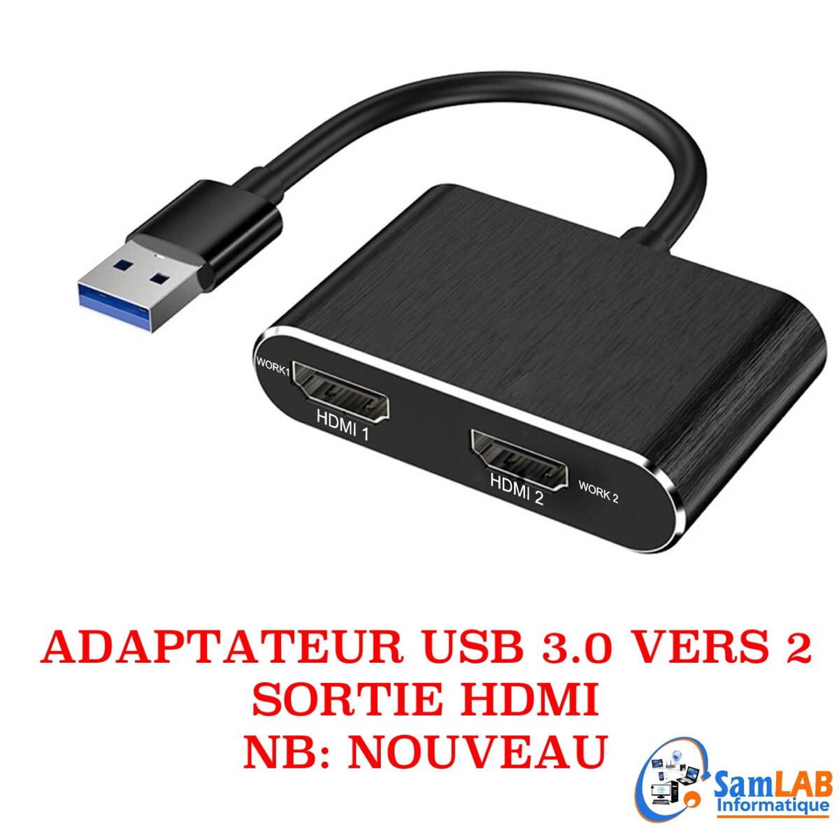 Adaptateur USB 3.0 vers 2 ports HDMI