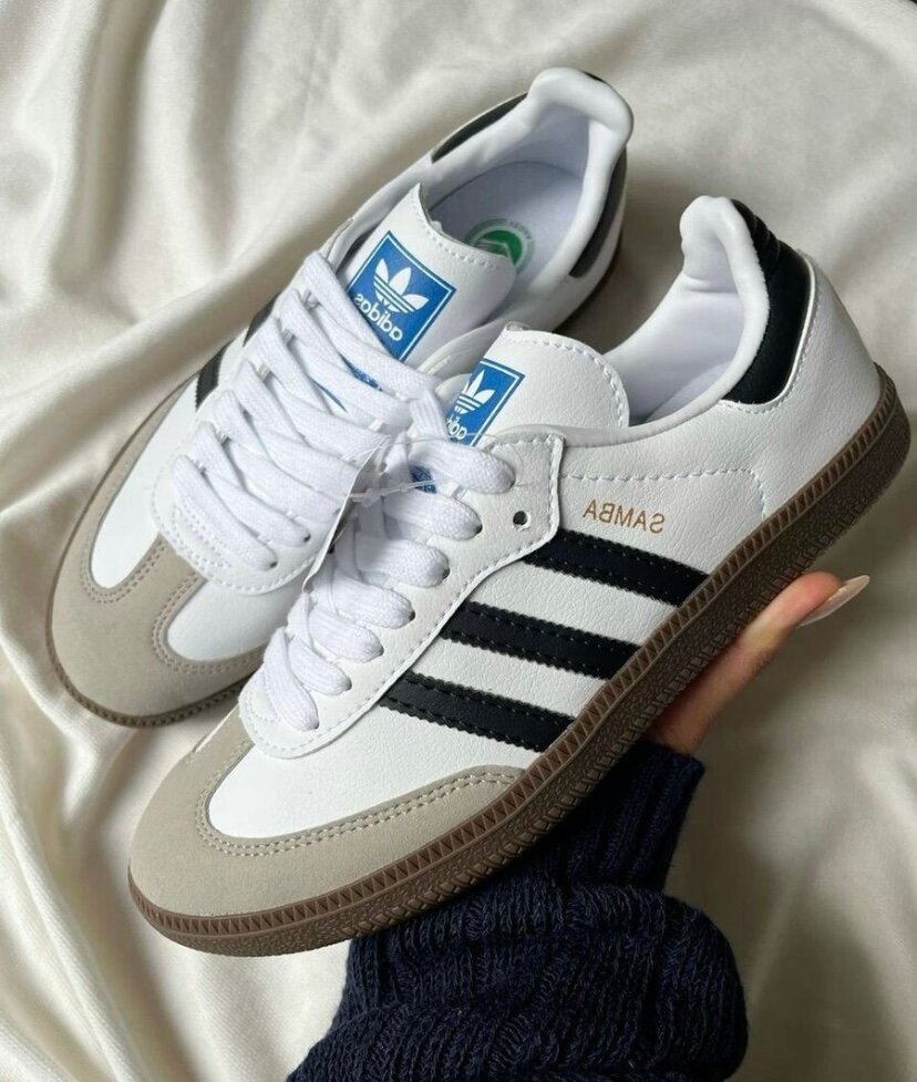 Découvrez les emblématiques sneakers Adidas Samba en blanc avec des accents noirs. Conçues pour offrir confort et style, elles sont parfaites pour vos tenues décontractées ou vos séances de sport. Fabriquées avec des matériaux de haute qualité, ces chaussures sont idéales pour les amateurs de mode cherchant à allier élégance et performance.