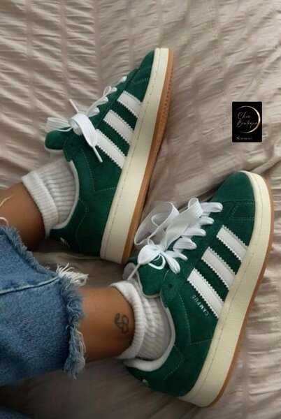Baskets Adidas Samba vertes et blanches. Coloris vert tendance, détails iconiques blancs, confortable pour tous les jours. Style urbain, parfait pour assortir vos tenues modernes.