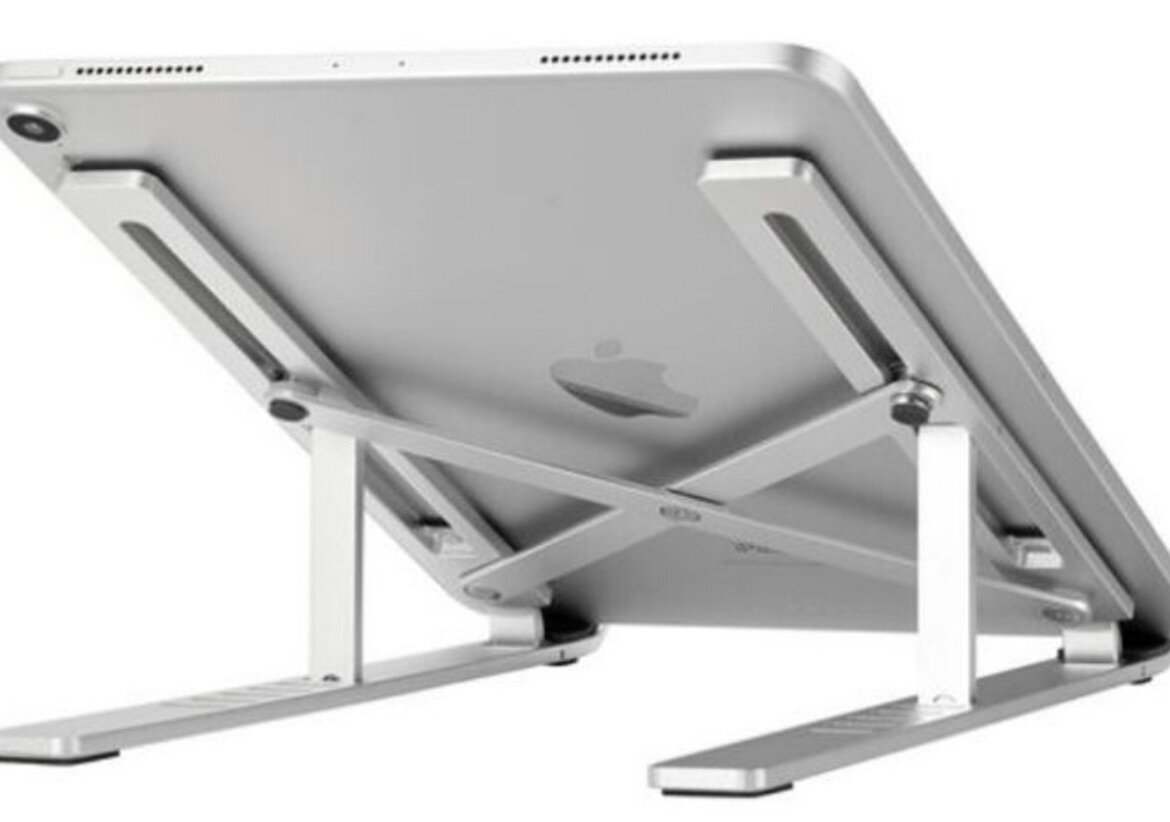 Adjustable Metal Laptop and Tablet Stand, which is a hands-free stand that holds your device upright. Soft pads shield your laptop or tablet from scratches and offer support, keeping it looking brand new. The aluminium stand may be folded flat when not in use and kept folded for simple carrying in your bag by magnets.
