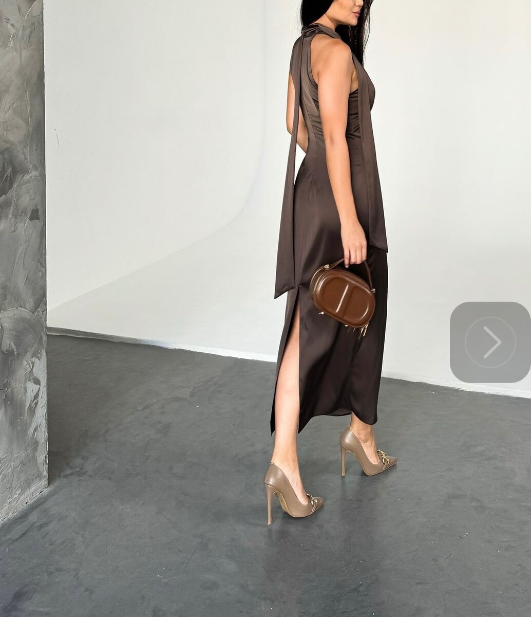 Шелковое платье в шоколадном цвете. Размер Л, на М/Л идет