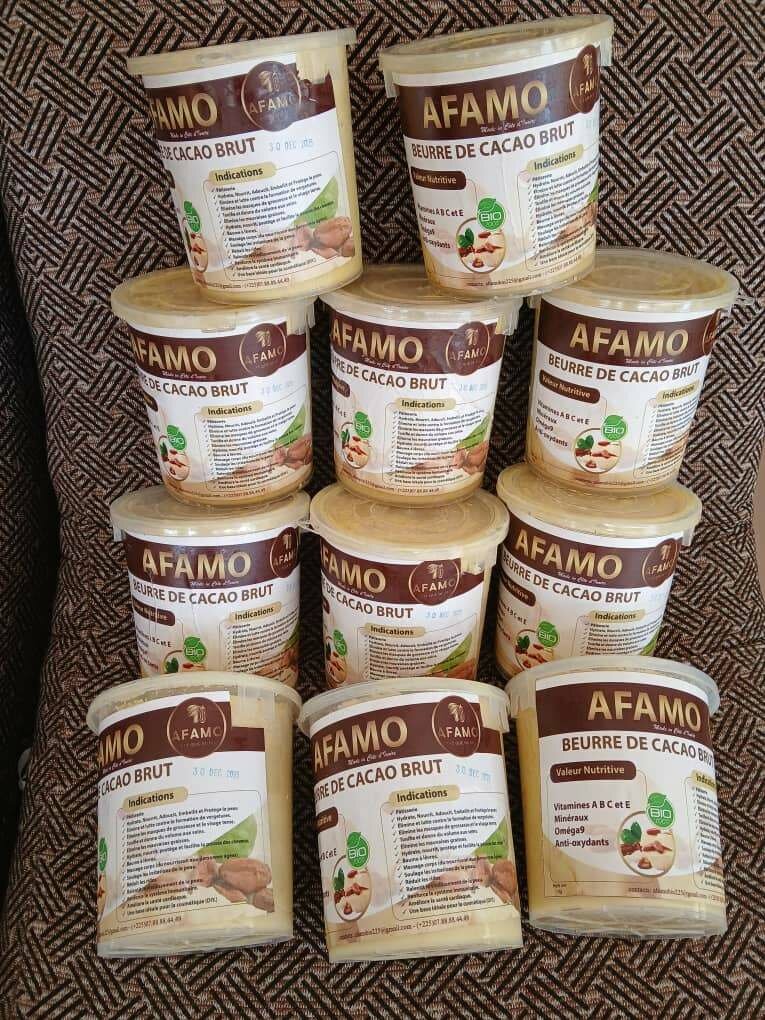 Découvrez le pur Beurre de Cacao Brut AFAMO BIO, riche en vitamines A, E et F pour nourrir et protéger votre corps et cheveux . Idéal pour les soins hydratants, anti-âge et contre les vergetures,masques de grossesse et irritations. Offrez à votre peau le meilleur du naturel avec ce beurre de cacao naturel de haute qualité.