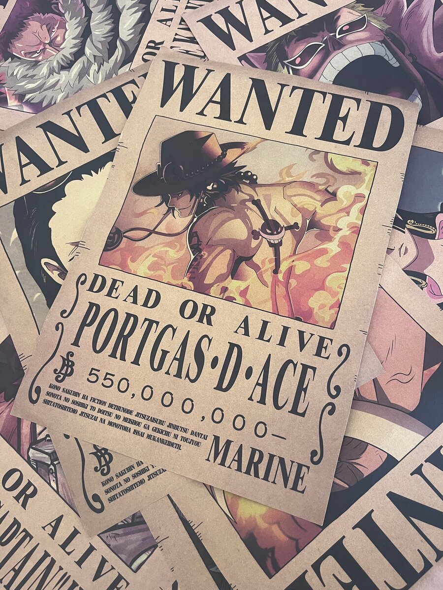 Décorez votre intérieur avec cette affiche inspirée de l'univers One Piece, représentant Portgas D. Ace avec une récompense de 550 millions de berry Impression de haute qualité sur papier épais.