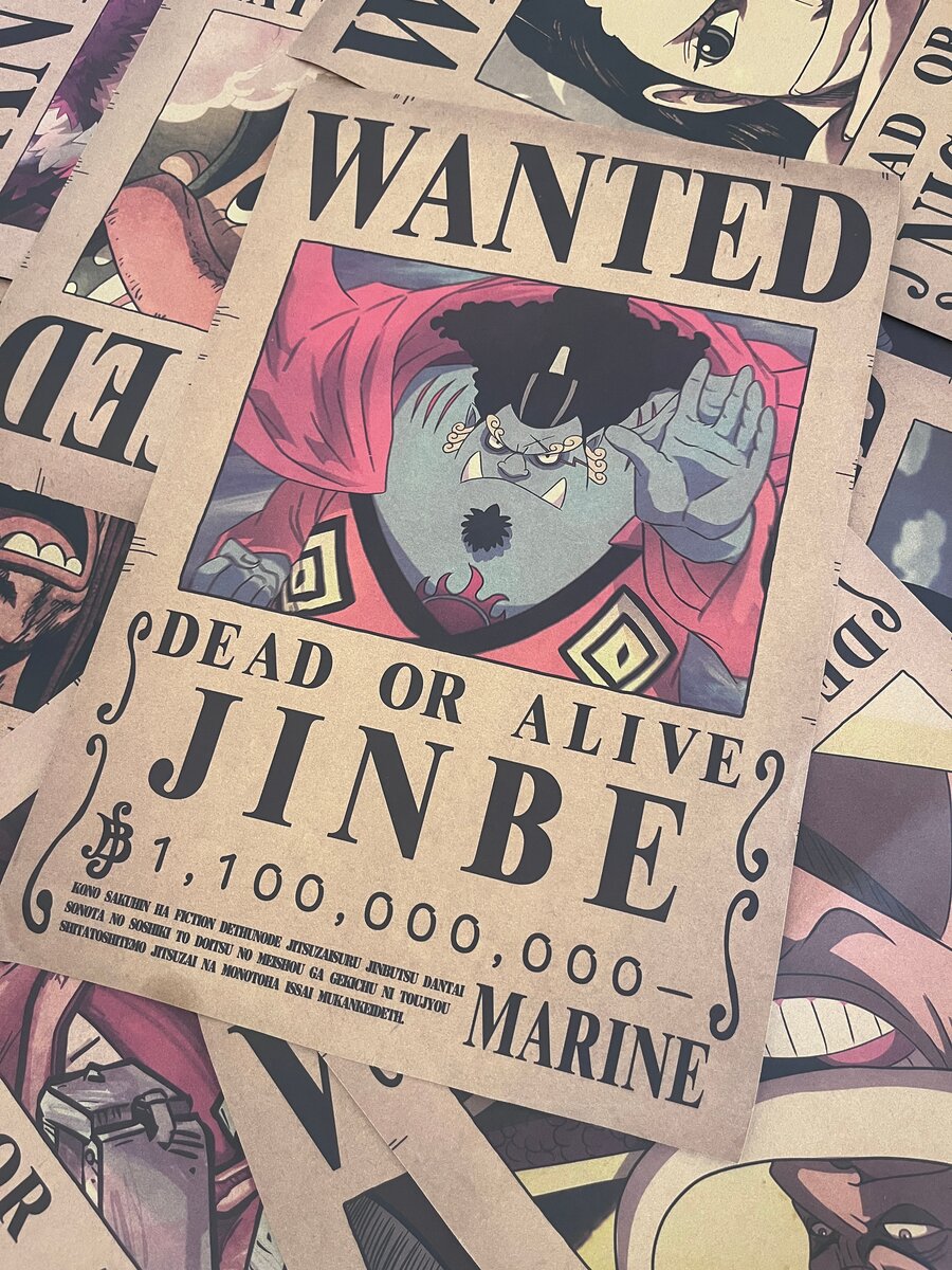 Décorez votre espace avec cette affiche Wanted de Jinbe, personnage emblématique de One Piece. Impression de haute qualité sur papier vintage. Idéal pour les fans de l'anime et du manga.