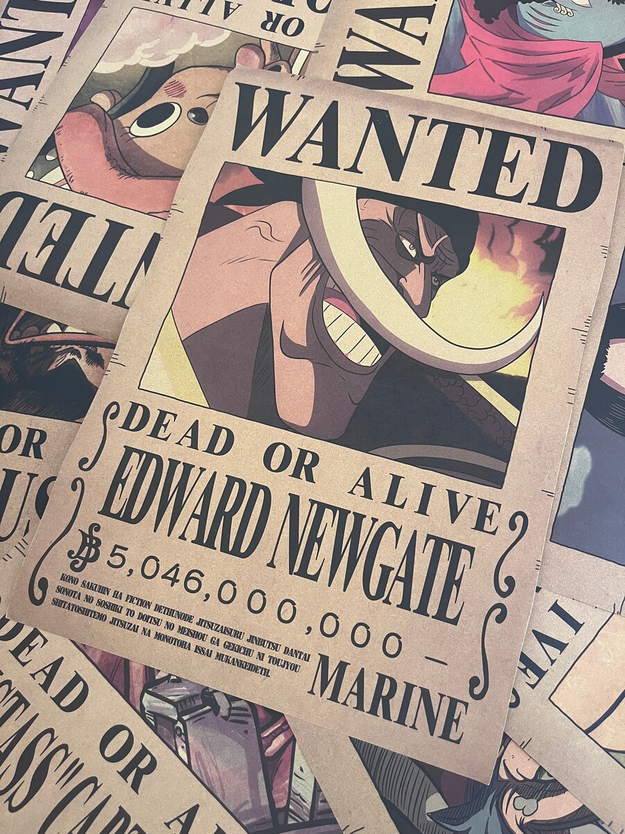Plongez dans l'univers de One Piece avec cette affiche Wanted reprenant le personnage d'Edward Newgate. Impression de haute qualité sur un papier vieilli pour un effet vintage. Idéal pour les fans de la série.