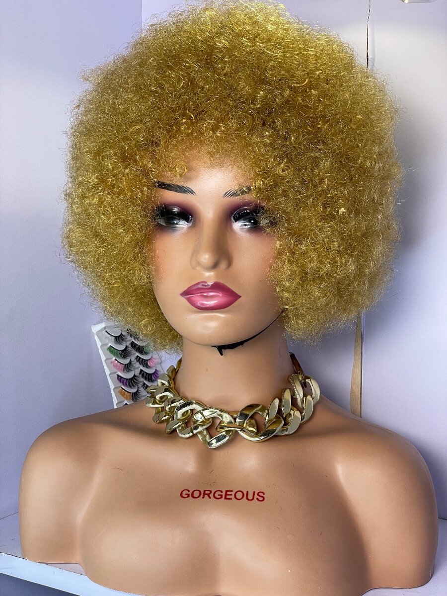 HIHOO Short Afro Wig with Bangs for Black Women Afro Curly W