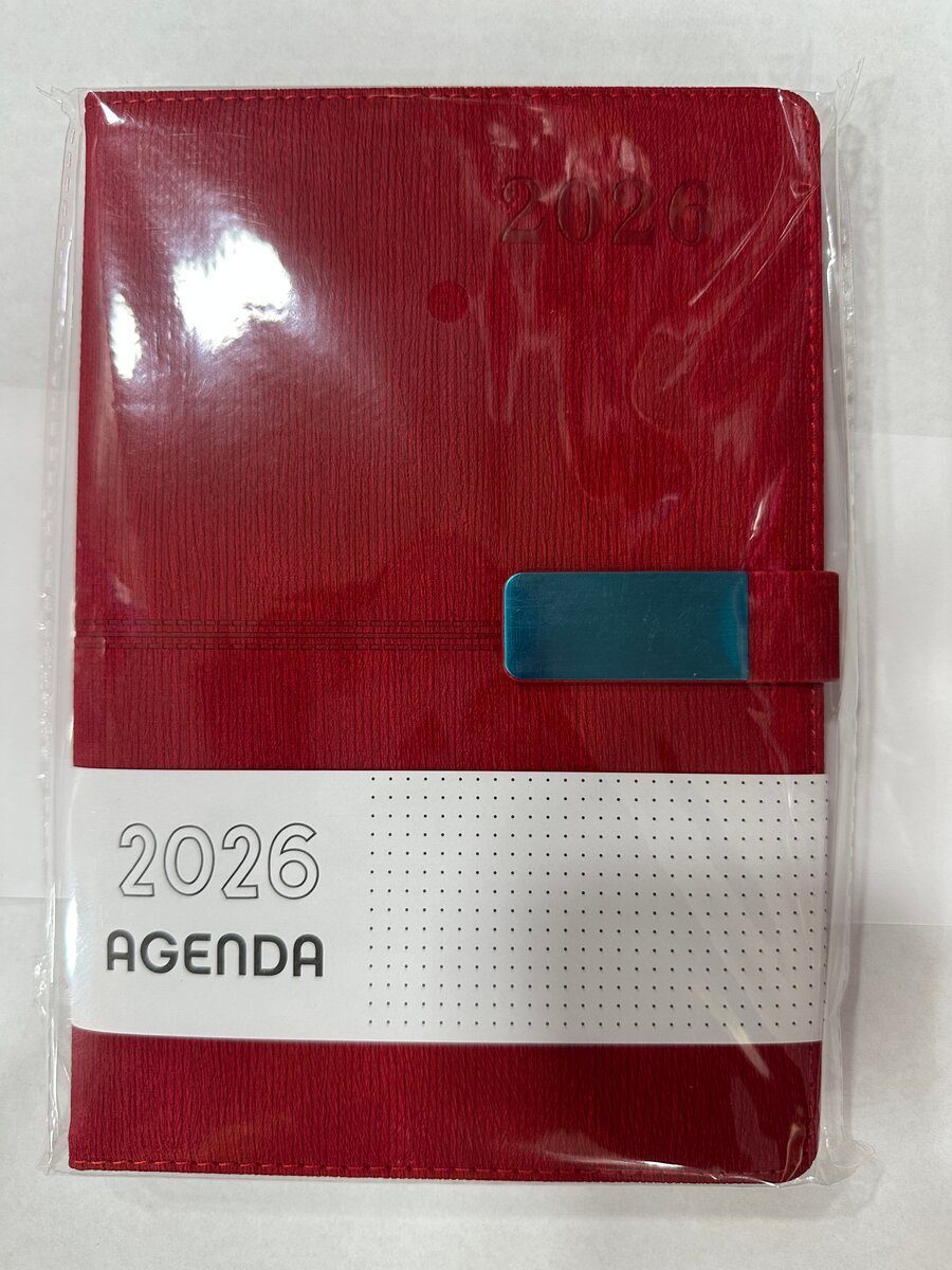 Découvrez l'agenda 2026 en cuir rouge élégant. Parfait pour organiser vos journées avec style. Compact et pratique, il est idéal pour le bureau ou la maison.