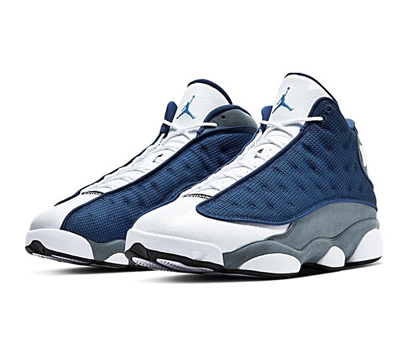 La Air Jordan 13 Retro Flint (2020) est composée dun upper majoritairement composé de maille bleu denim laissant apparaître un revêtement réfléchissant. La toebox et la languette en cuir blanc apportent du contraste pendant qu empiècement en suede gris partant du talon et allant jusqu'au au garde-boue, apporte de la structure au design. Le tout est finalisé par un Jumpman bleu ciel au niveau de la languette, lincontournable hologramme sur les côtés extérieurs et des mini languettes à la bas.