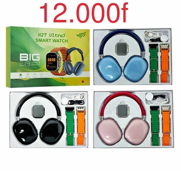 Montre connectée H25 MAX + 4 Bracelets + Écouteurs Bluetooth
