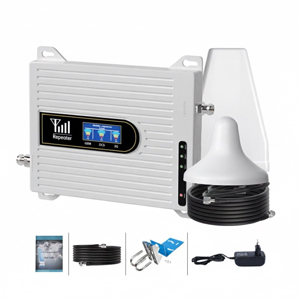 Améliorez votre connexion avec cet amplificateur de signal mobile 3G/4G. Idéal pour la maison ou le bureau, il optimise la réception et couvre de grandes surfaces. Installation facile avec tous les accessoires inclus. Parfait pour les zones à faible couverture réseau.