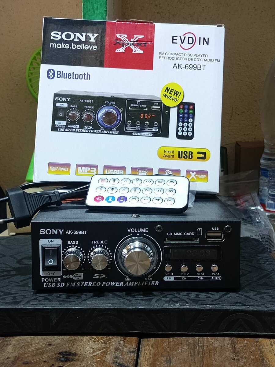 Profitez d'une expérience sonore exceptionnelle avec l'amplificateur stéréo Sony AK-699BT. Connectez facilement via Bluetooth ou USB et contrôlez grâce à la télécommande incluse. Parfait pour votre voiture ou votre maison, cet amplificateur allie qualité sonore et polyvalence. Idéal pour les amateurs de musique.