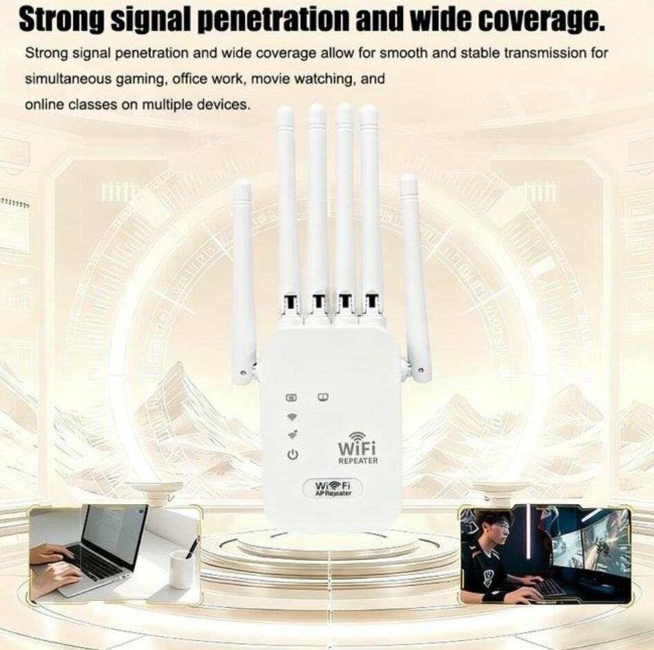 Améliorez votre connexion WiFi avec cet amplificateur puissant. Idéal pour les grandes maisons ou les bureaux, il offre une couverture étendue et des vitesses rapides pour un travail et des loisirs fluides.