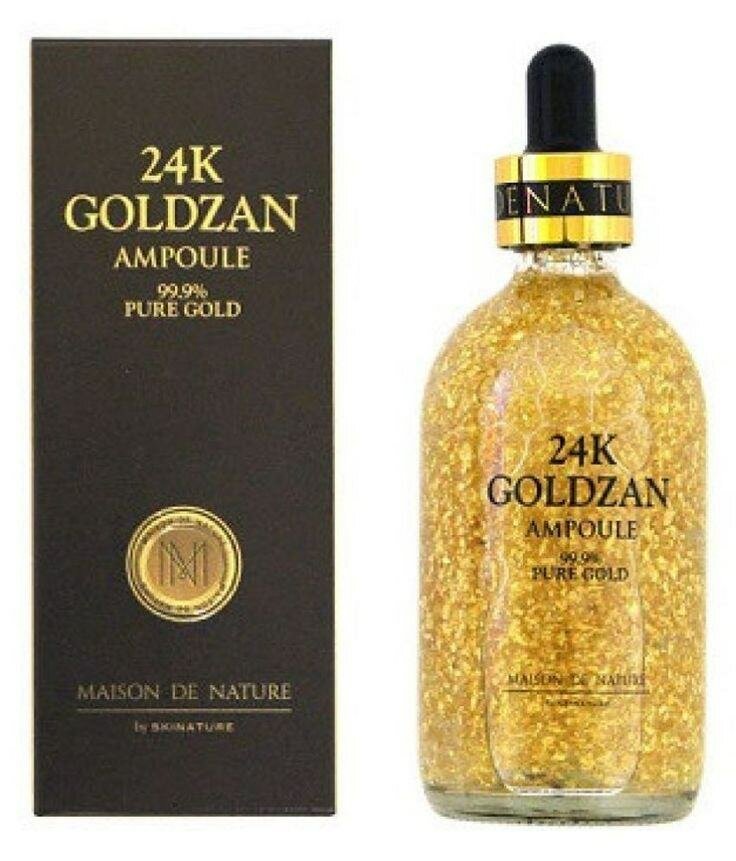 Découvrez l'ampoule 24K Goldzan, riche en particules d'or pur à 99,9%. Cette formule luxueuse répare et illumine votre peau.