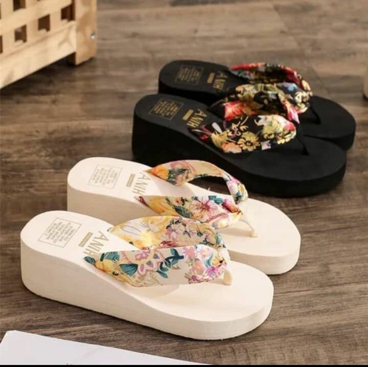 Tongs compensées florales