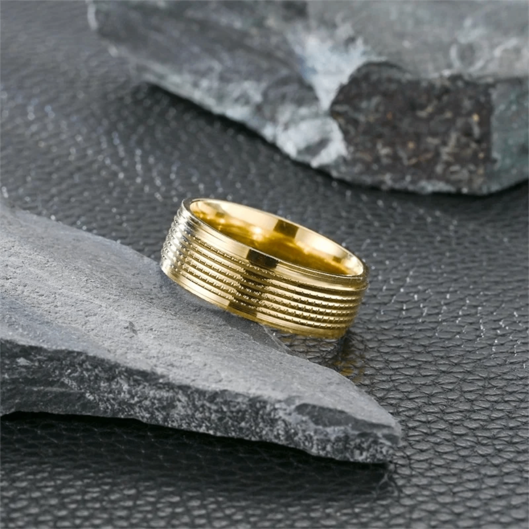 Cet anneau doré au design moderne est idéal pour ajouter une touche de sophistication et d'élégance à n'importe quelle tenue.