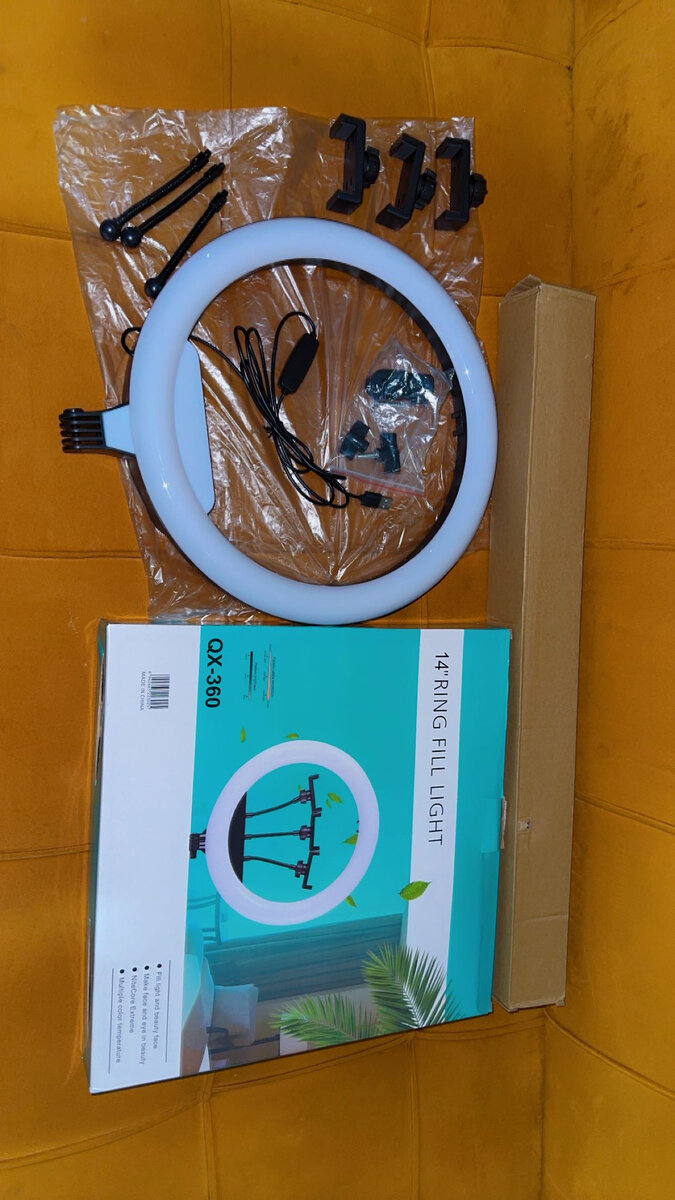 Mettez en valeur vos vidéos avec cet anneau lumineux de 14 pouces. Idéal pour les vloggers, maquilleurs et créateurs de contenu, il offre une lumière douce et uniforme. Avec support ajustable et commandes de luminosité, ce produit est parfait pour les photos et vidéos professionnelles.