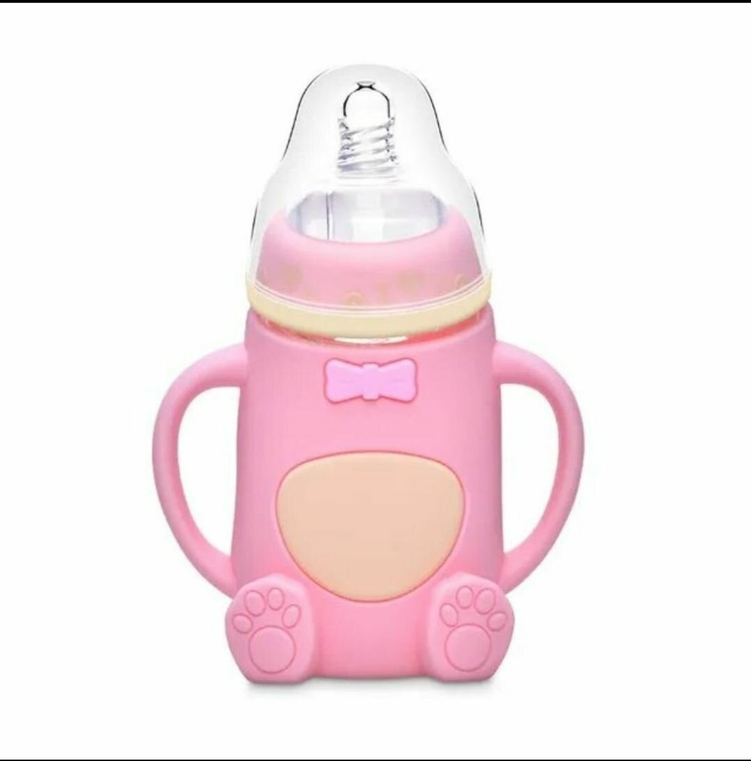 Capacité : 240ml. Matière de la bouteille: verre. Caractéristiques : protection en silicone évitant la casse à chaque chute; paille 360° evitant d'avaler l'air.