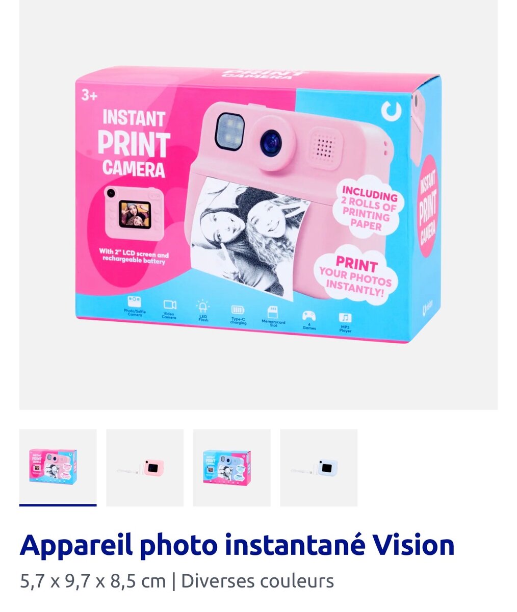 Capturez chaque moment avec cet appareil photo instantané pour enfants. Imprimez photos et selfies immédiatement et profitez de fonctionnalités 3-en-1 : appareil photo, selfie et vidéo. Avec écran LCD 2" et lecteur MP3 intégré, il est le compagnon idéal pour s'amuser et créer des souvenirs durables. Choisissez entre bleu et rose !