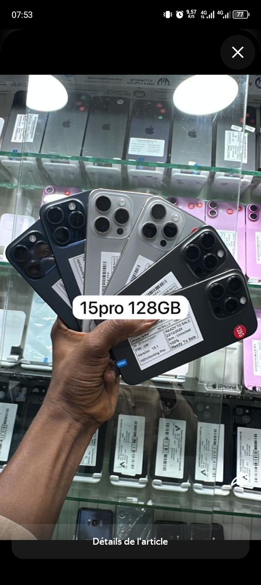 Téléphone Apple iPhone 15 Pro 128GB reconditionné, stockage généreux, performances exceptionnelles. Idéal pour un usage quotidien.